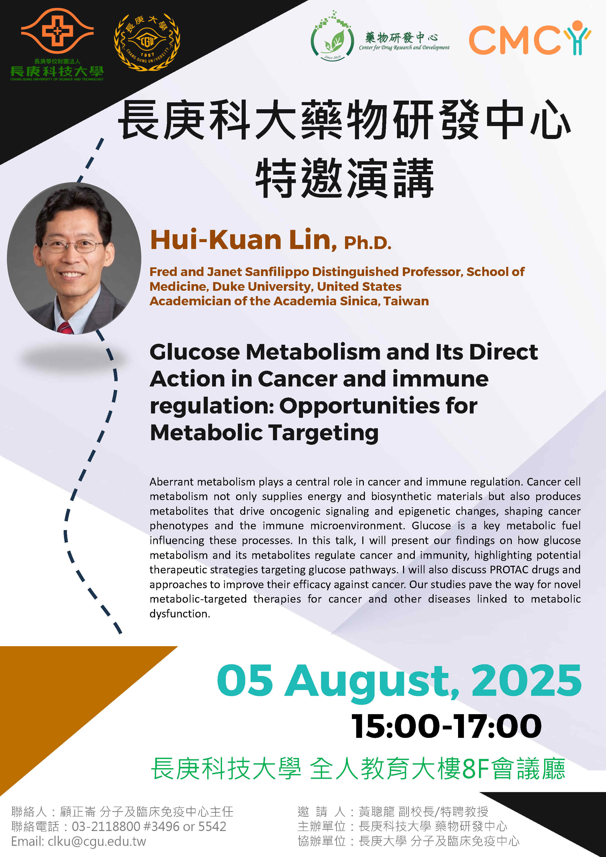 六、 主辦單位:長庚科技大學藥物研究中心/長庚大學分子及臨床免疫中心