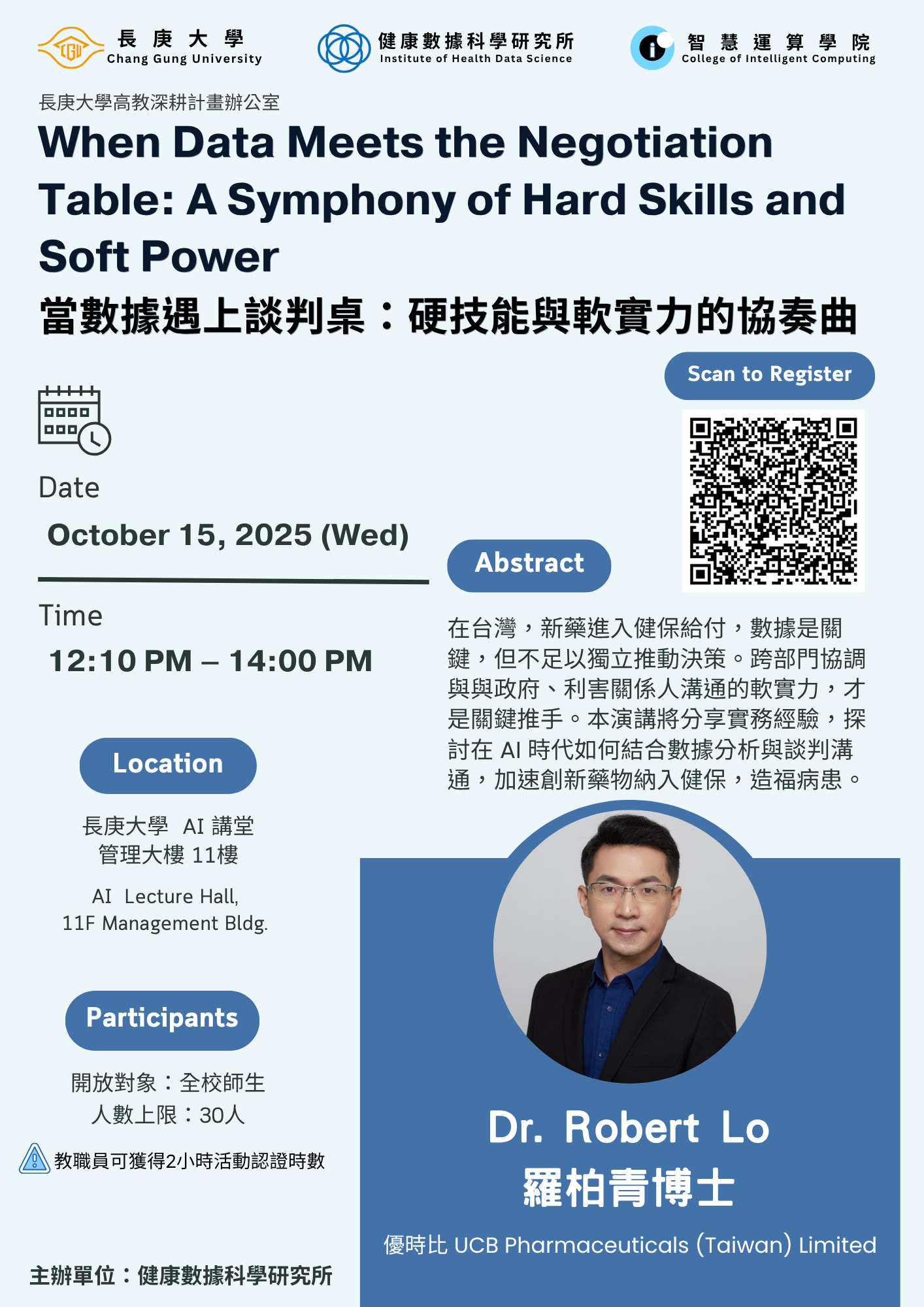 【AI Seminar】Octorber 15, 2025 – “Data at the Negotiation Table: Harmonizing Hard Skills and Soft Skills” – Dr. Robert Lo, Head of Access, Sustainability & External Engagement for Taiwan & Hong Kong at UCB