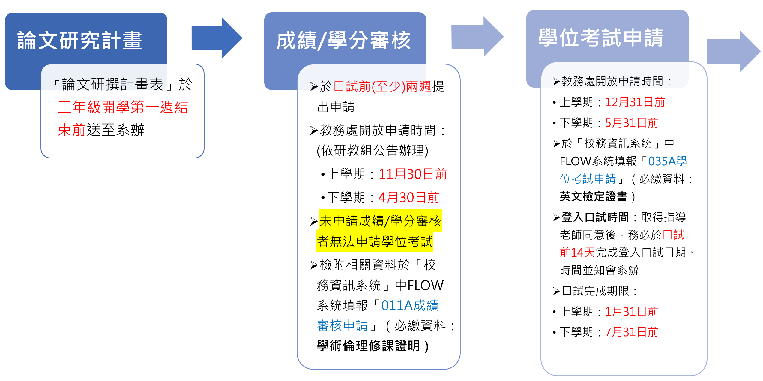 決定研究生是否可提出博(碩)士學位考試(論文口試)之申請,並簽署「指導教授同意函(Oral Defense)」,及於FLOW系統中填寫提交「 035A學位考試申請」表。