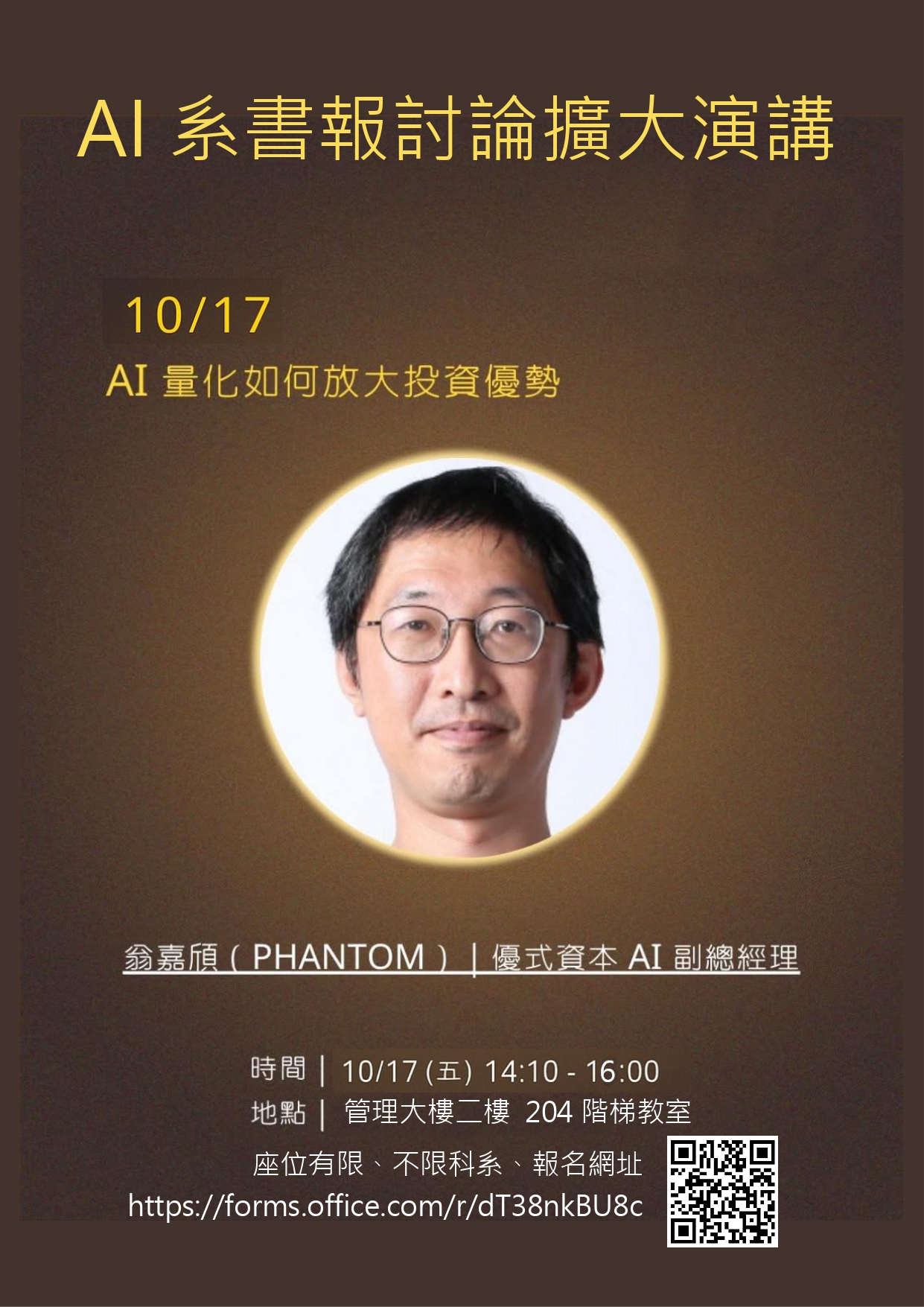 【演講公告】2025.10.17 – “AI 量化如何放大投資優勢” – 翁嘉頎先生 優式資本公司 AI副總經理