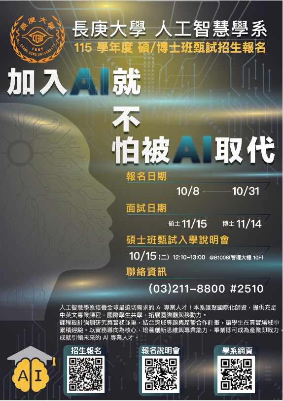 🔗招生簡章與線上報名:https://www.cgu.edu.tw/recruit/Subject/Detail/70331?nodeId=238