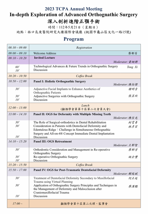 Integral application: Taiwan Society of Plastic Surgery, Taiwan Society of Surgeons, Society of Oral and Maxillofacial Surgery of the Republic of China, Society of Orthodontics and Orthodontics of the Republic of China