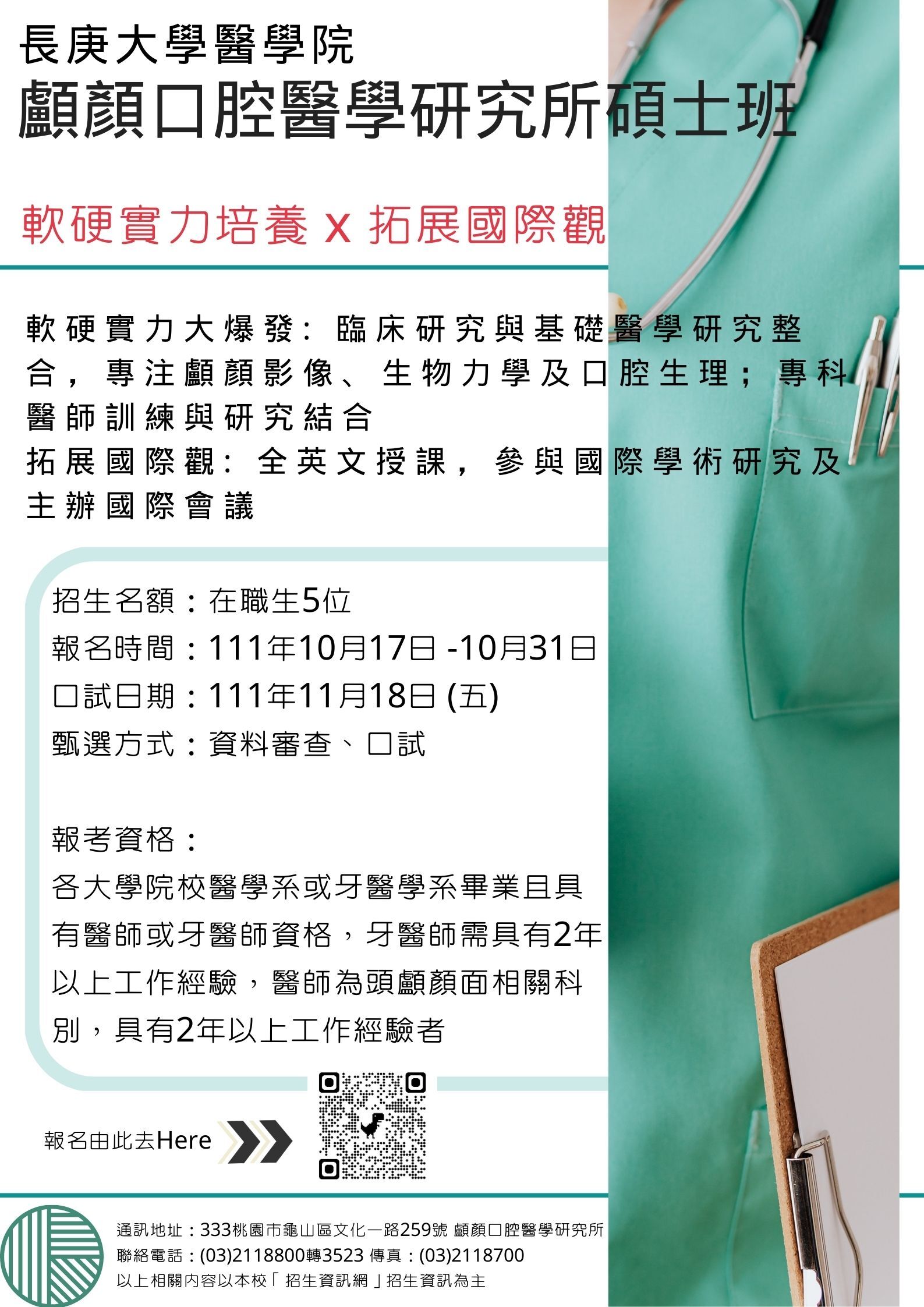 112學年度顱顏口腔醫學研究所甄試招生資訊