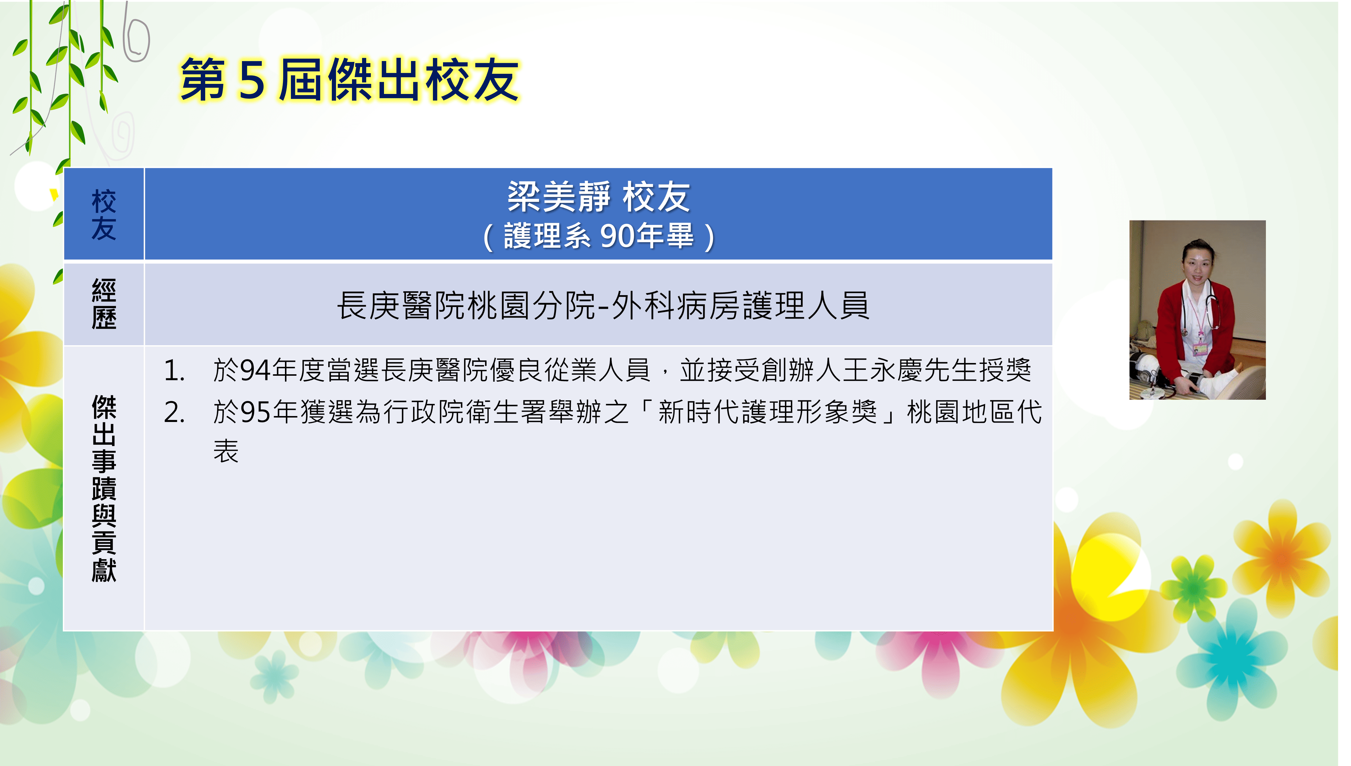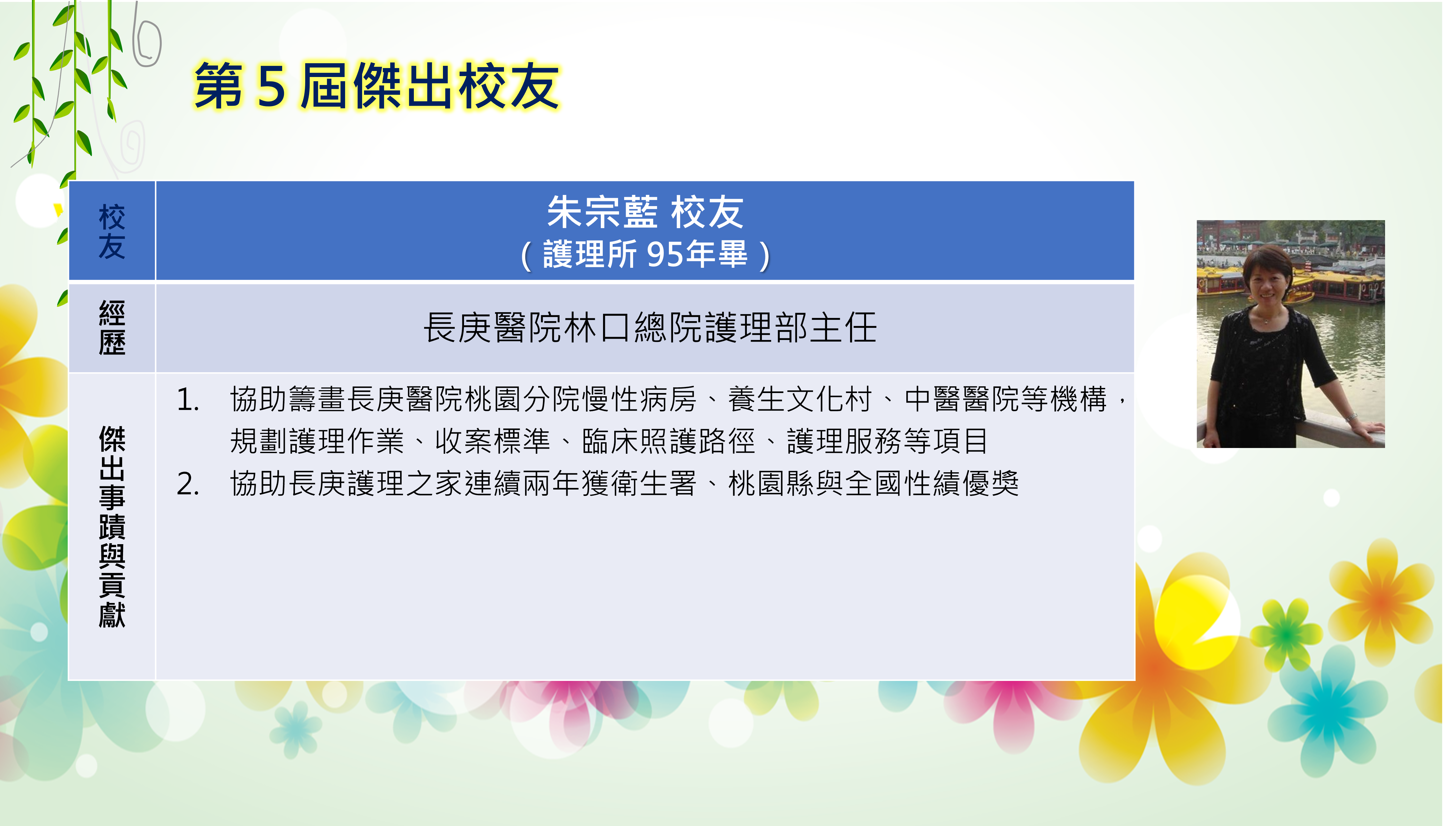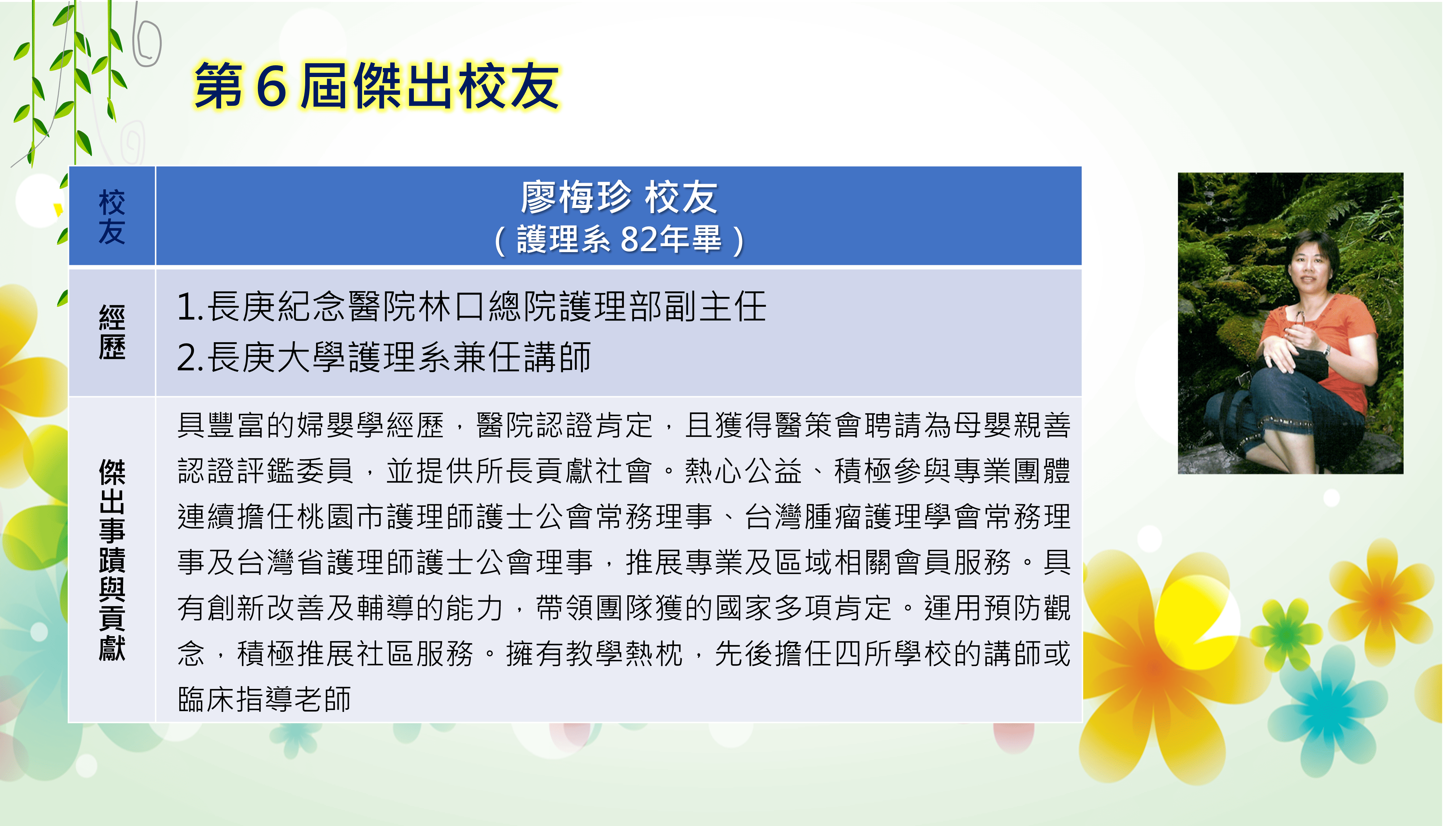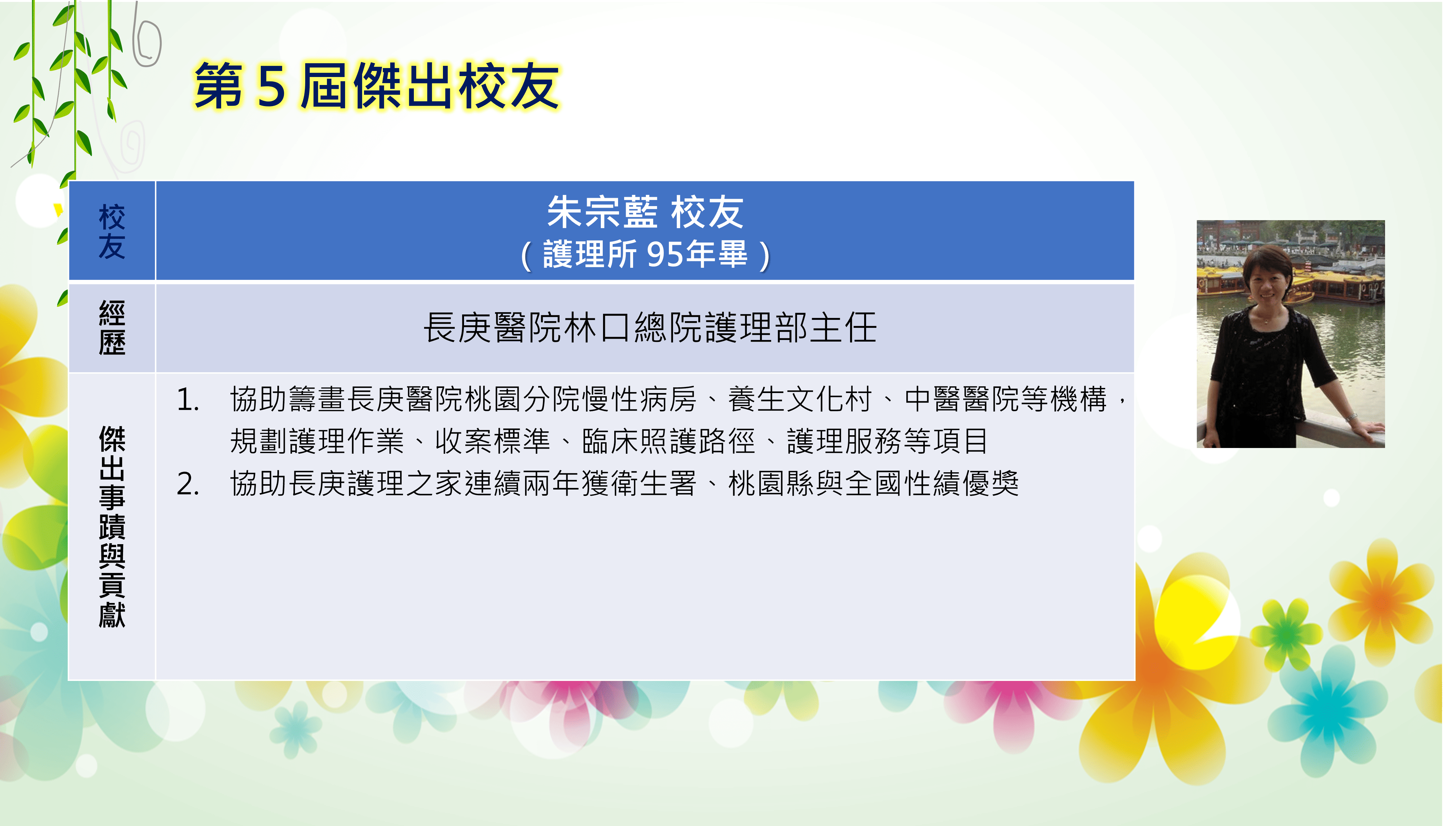 長庚大學創校三十餘年,本校畢業學子不論投入社會服務或繼續深造,都學以致用,充分發揮其所長,而且他們服務的熱誠與精神也多受到服務單位的肯定與歡迎,實踐了本校培育優秀專業人才貢獻社會的目標,為弘揚校譽,以樹立校友楷模,並激勵在校學生發揚長庚之光。