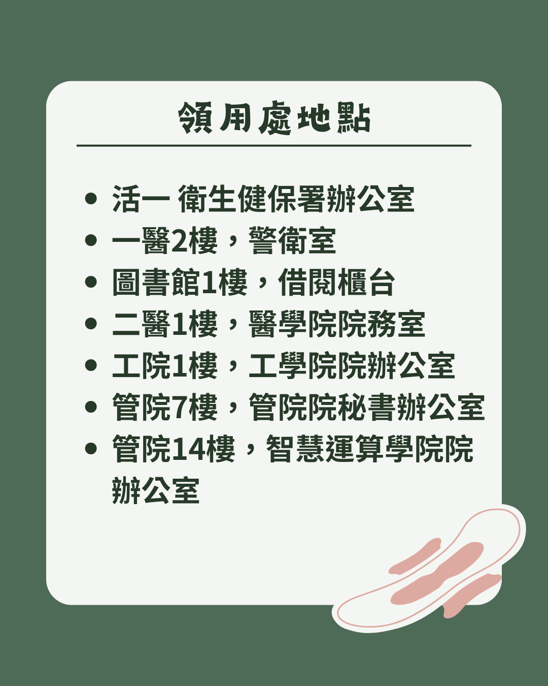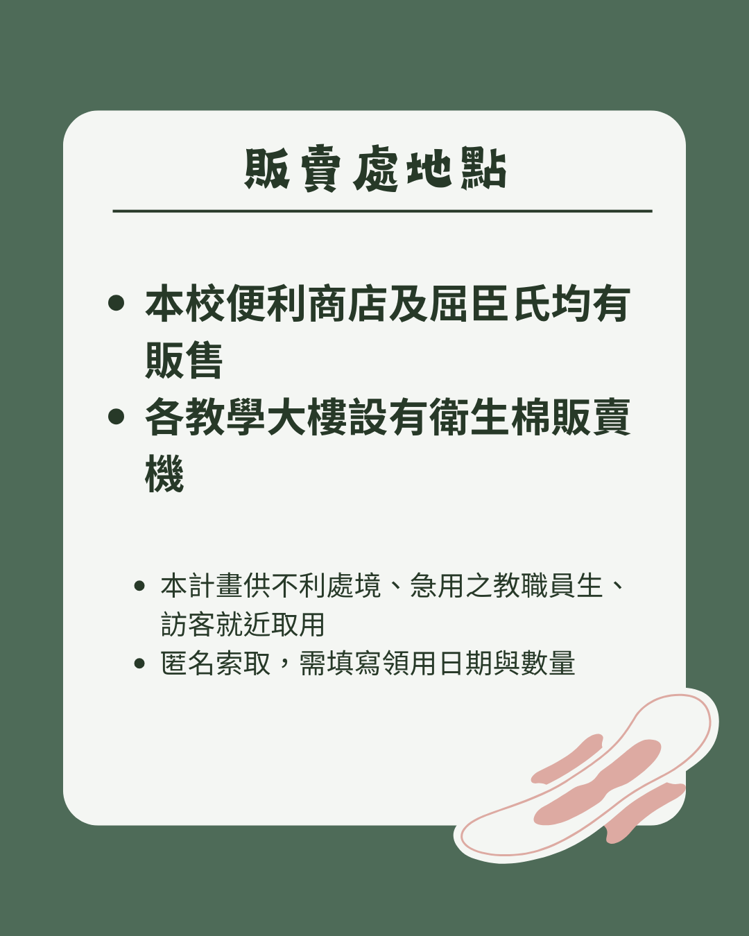 學校推出「友善提供理用品計畫」,讓每位有需要的師生及訪客,都能在緊急時刻獲得即時協助,安心度過不便時光。