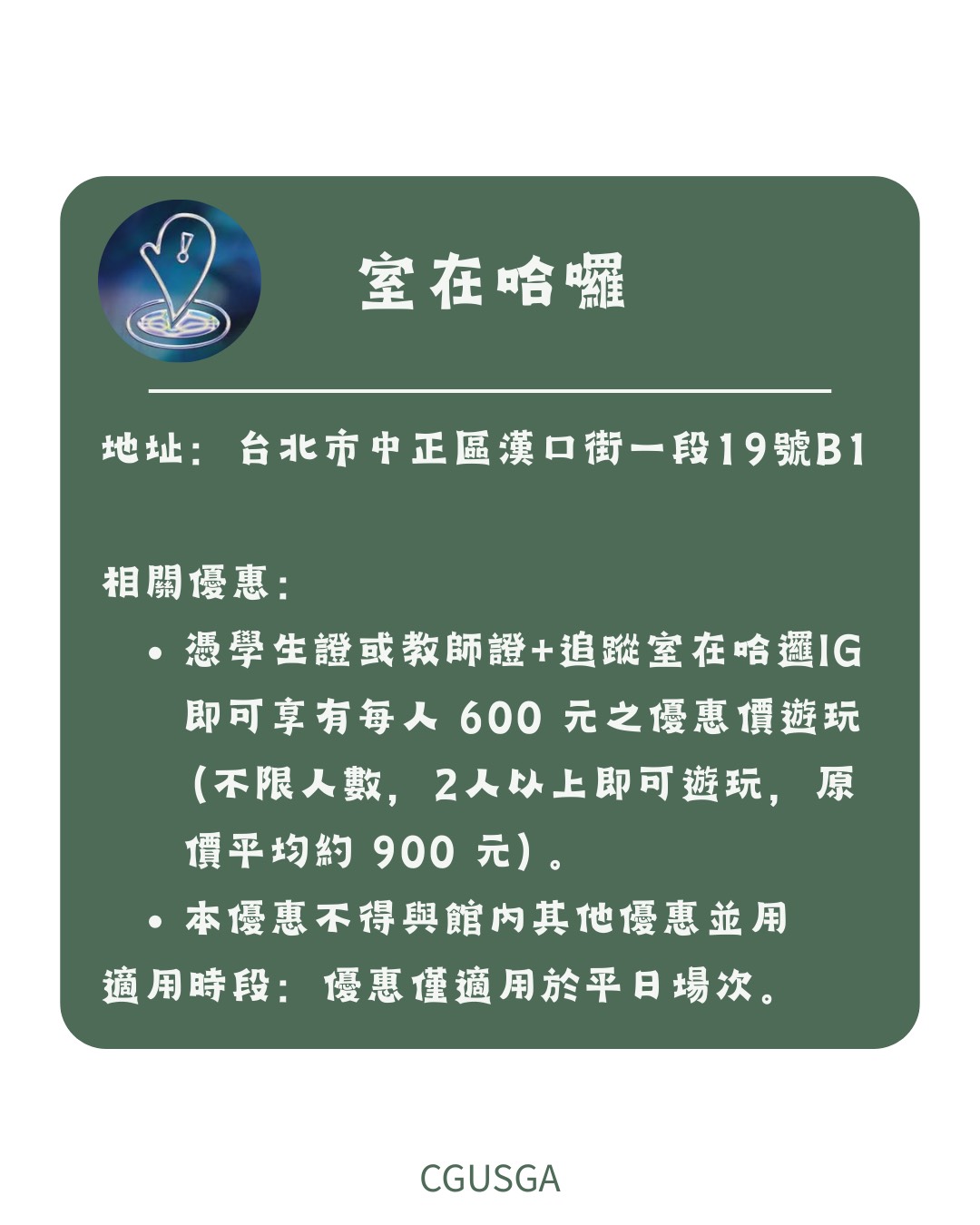 只要拿出 學生證 or 教師證 + 追蹤「室在哈囉」IG