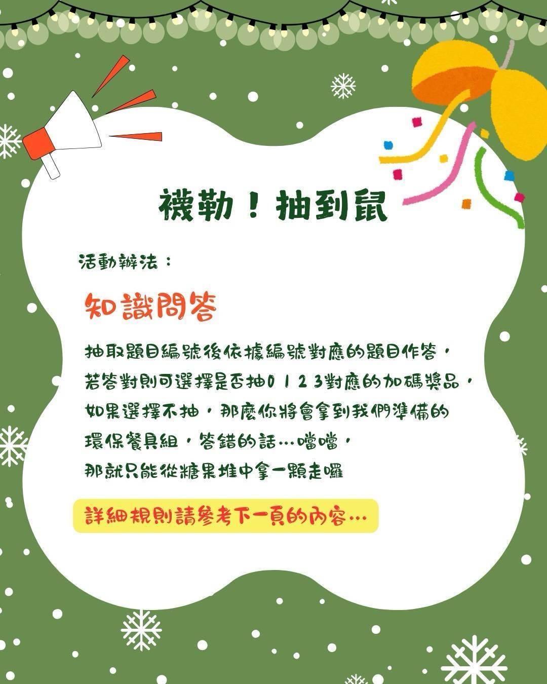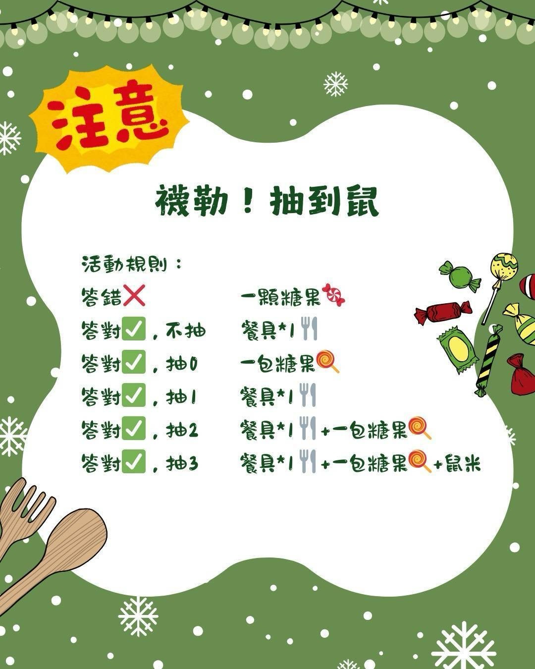 ⭕ 答對、抽3:環保餐具1 + 糖果包1 + 鼠米1