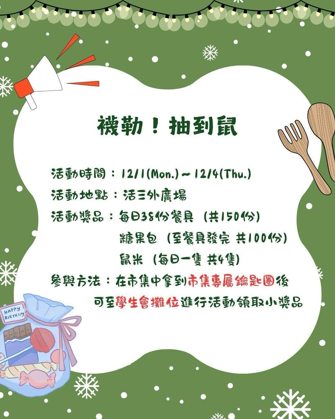 冬日市集我們等你來玩,來抽鼠米、來拿餐具,來一起過最暖的十二月!✨