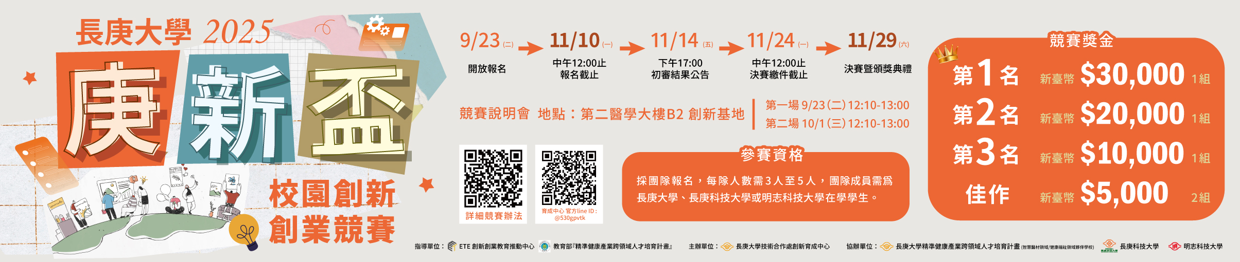 📢 2025年庚新盃校園創新創業競賽說明會(9/23、10/1共兩場次)。