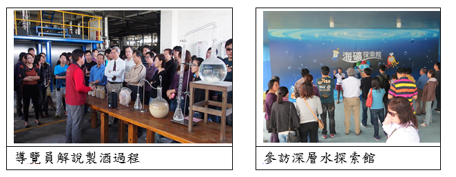 行程的第二天,來到了花蓮酒廠及深層水探索館(Taiwan Yes)參訪。在酒廠,透過導覽員的徐徐引領,不僅參觀了製酒的過程,也學到如何喝酒才不傷身,真是一舉兩得呢!而台灣海洋深層水公司(其為台肥與悅氏合作之關係企業)著眼於花東地形及所處位置之優勢,於此砸下重金,耗資了數十億,鋪設相關工程設備,以進行深層水的探索與研發,並以深層水能補足身體上失落的營養分子完整度而開發出多樣健康取向的產品。