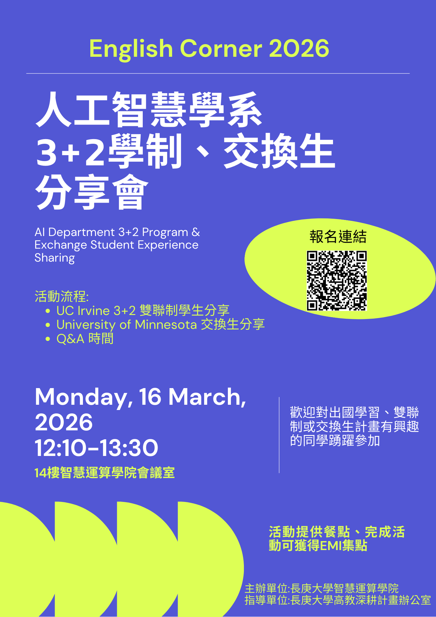 席位有限,請提前報名(提供午餐)!https://forms.office.com/r/Uk9VYKzmAL。完成活動可獲得EMI集點。