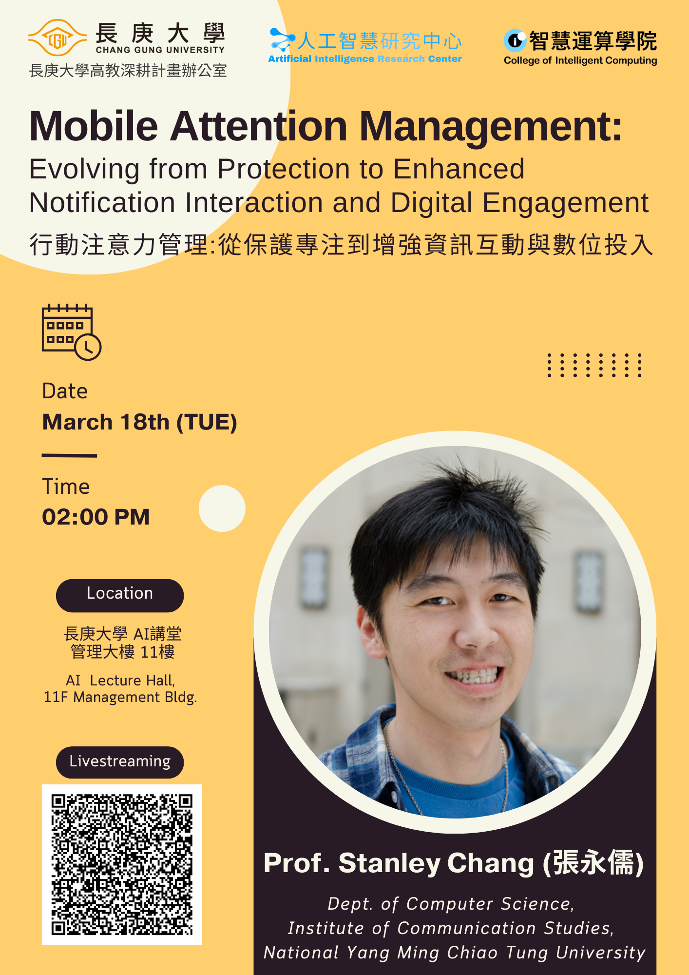 演講主題:行動注意力管理:從保護專注到增強資訊互動與數位投入(Mobile Attention Management: Evolving from Protection to Enhanced Notification Interaction and Digital Engagement)