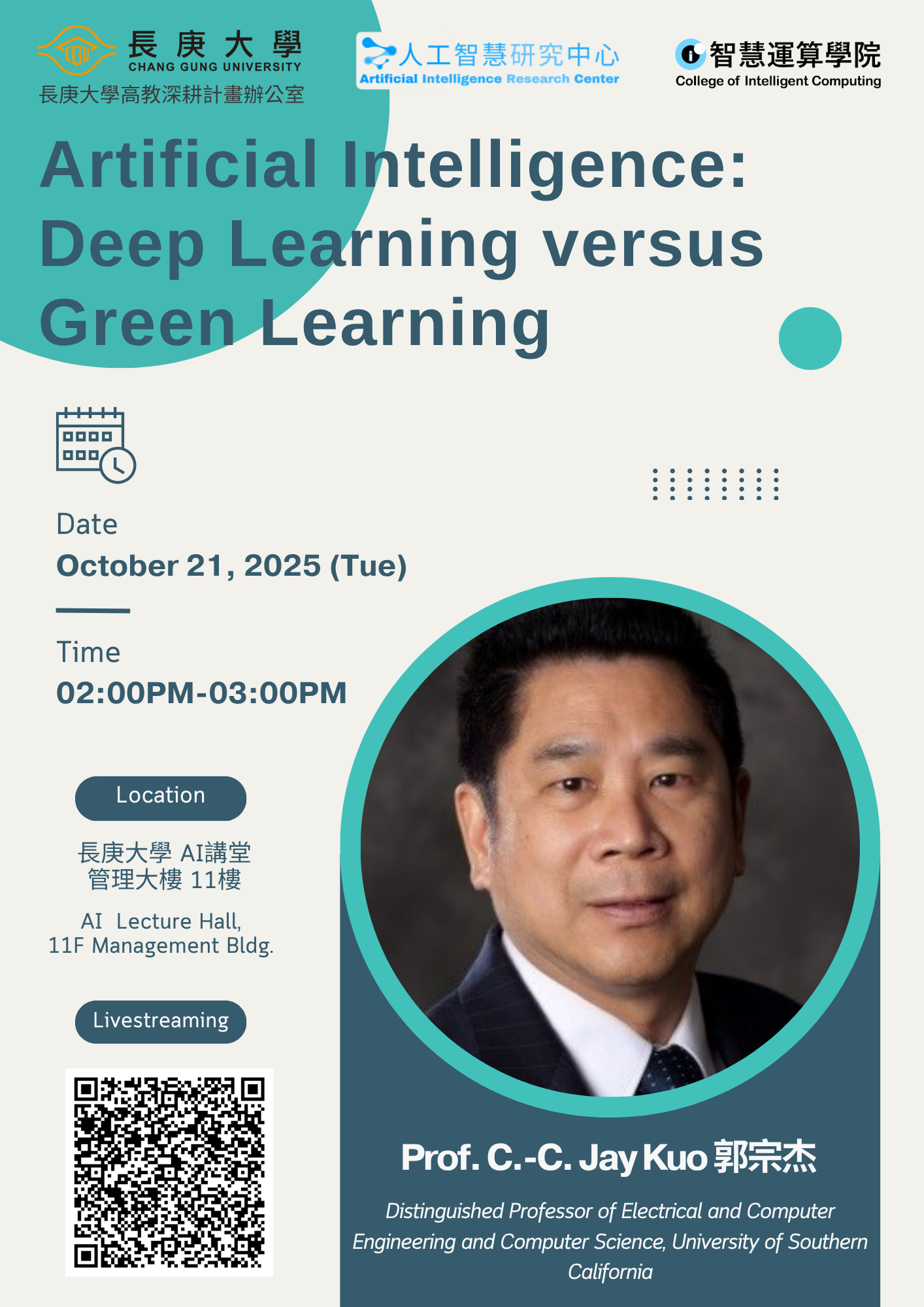 演講主題:Artificial Intelligence: Deep Learning versus Green Learning