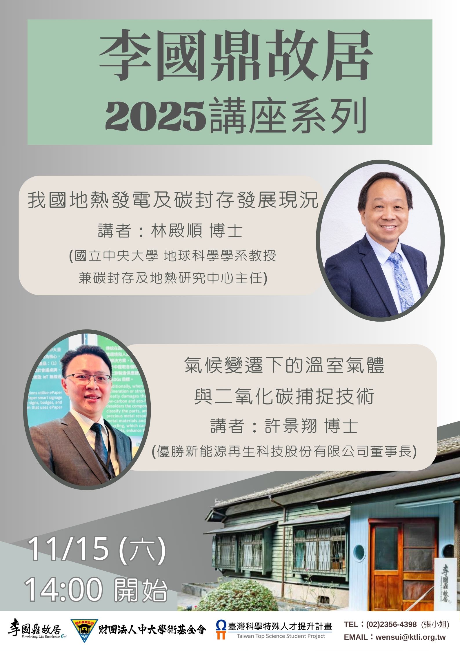 1、 我國地熱發電及碳封存發展現況:林殿順博士(國立中央大學地球科學學系教授兼碳封存及地熱研究中心主任)。
