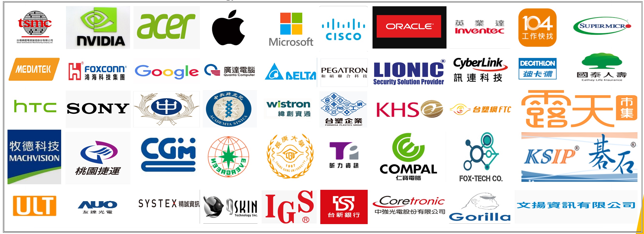 - 合作企業:台塑集團、工研院、微軟台灣分公司、凌華、研華、英業達、廣達、麗臺、新普、東元、及西門子等國內外知名企業等