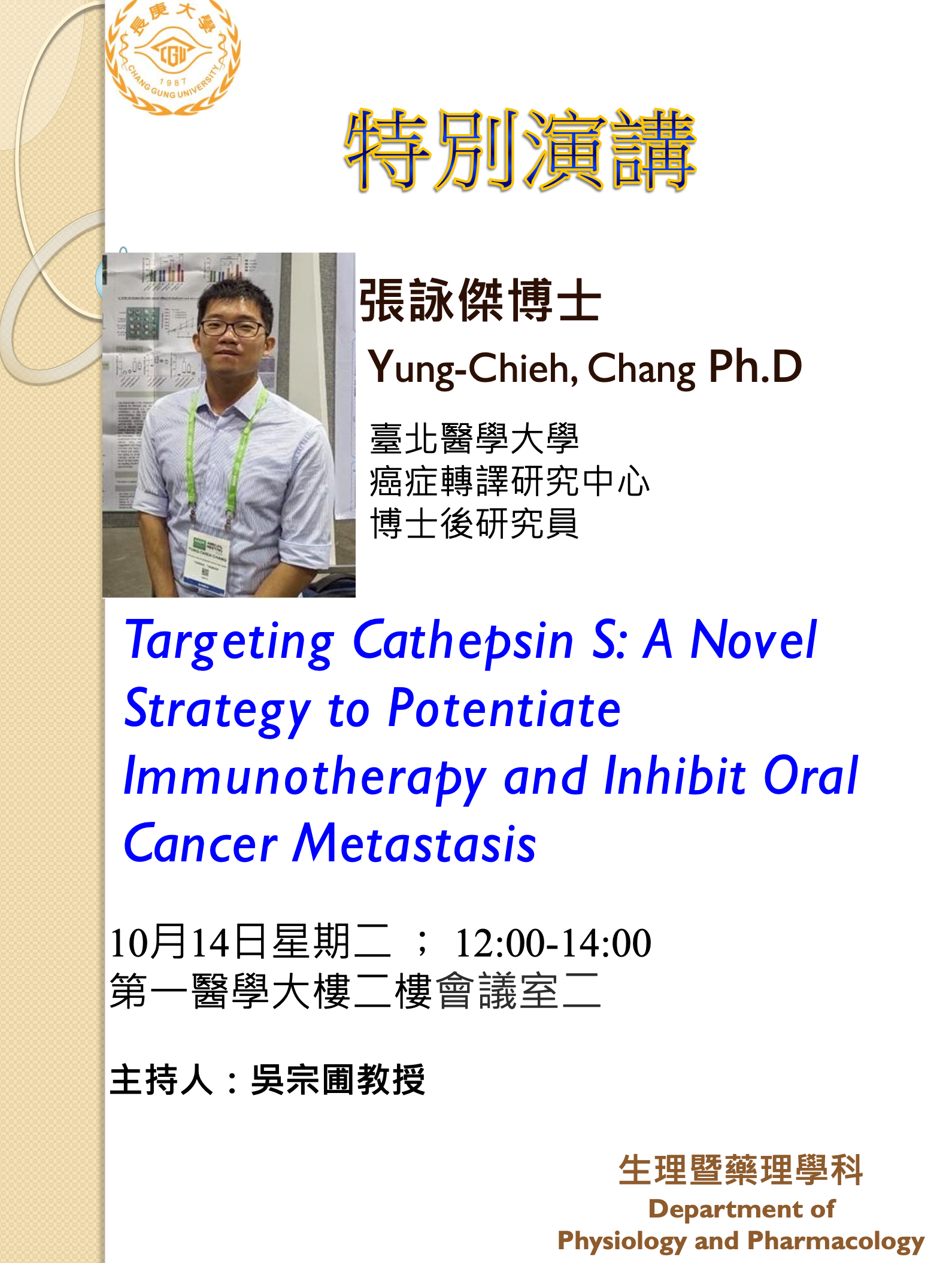 長庚大學生理暨藥理學科專題演講【張詠傑博士】