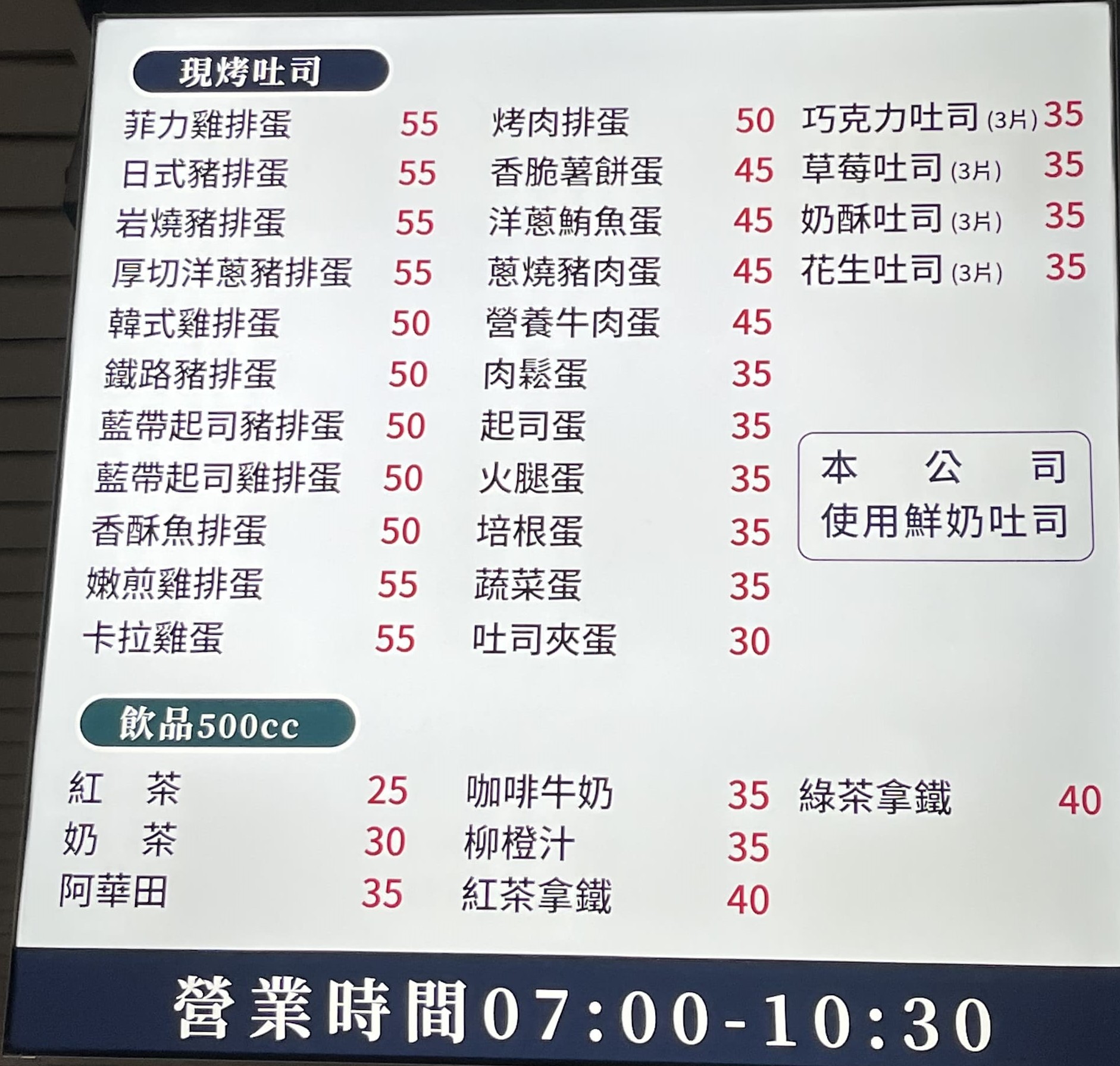 營業時間:週一至週五07:00~19:00