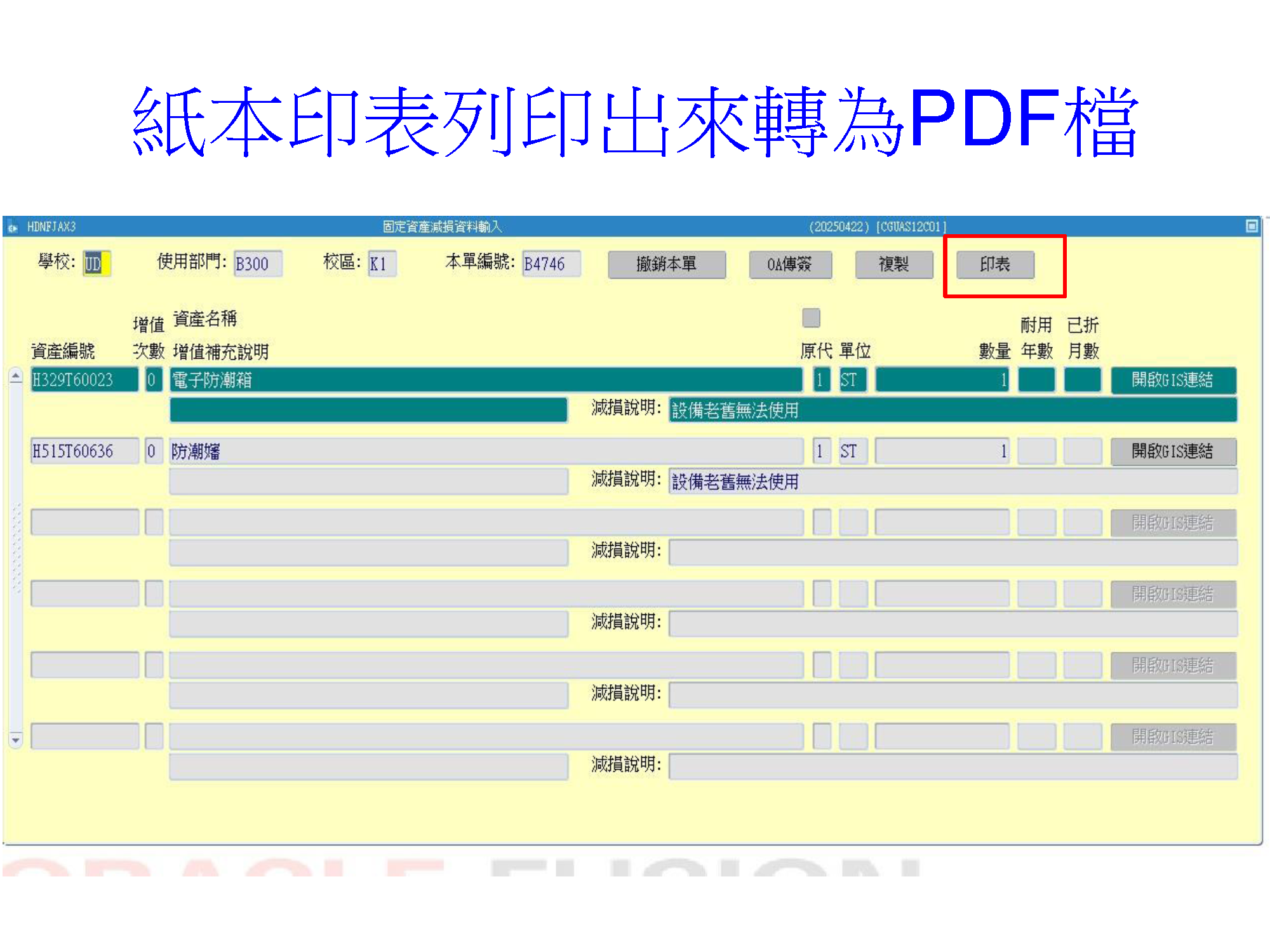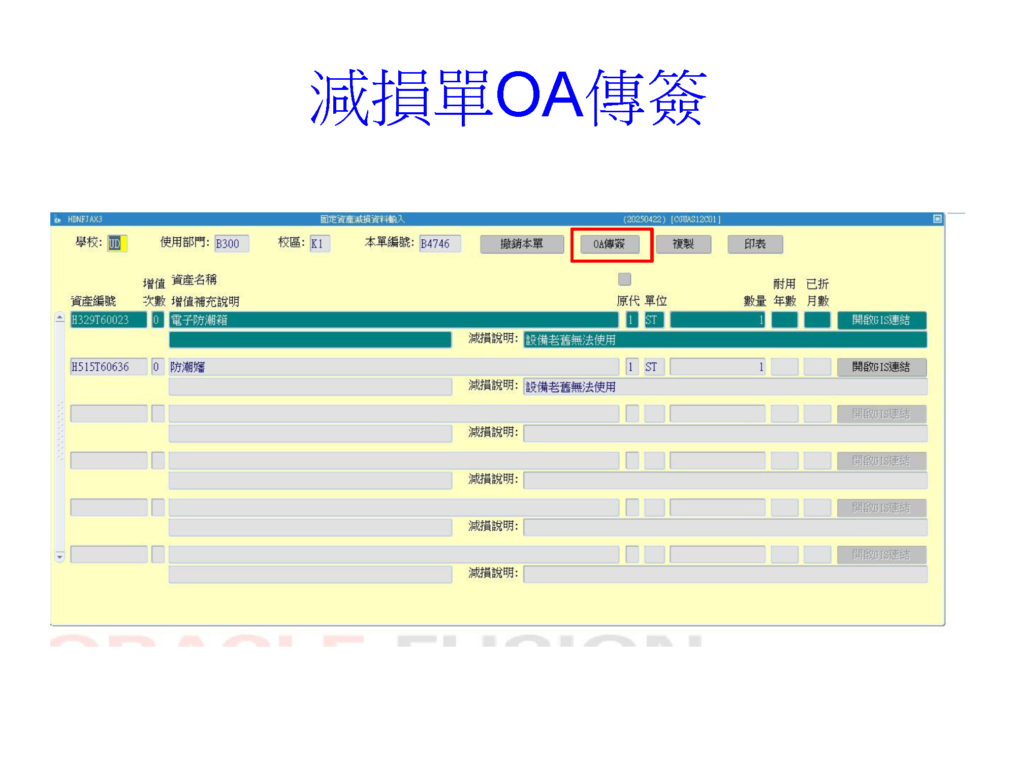 三、完成上述核簽流程後,再於ERP引出原「減損單」,轉成OA單傳簽。