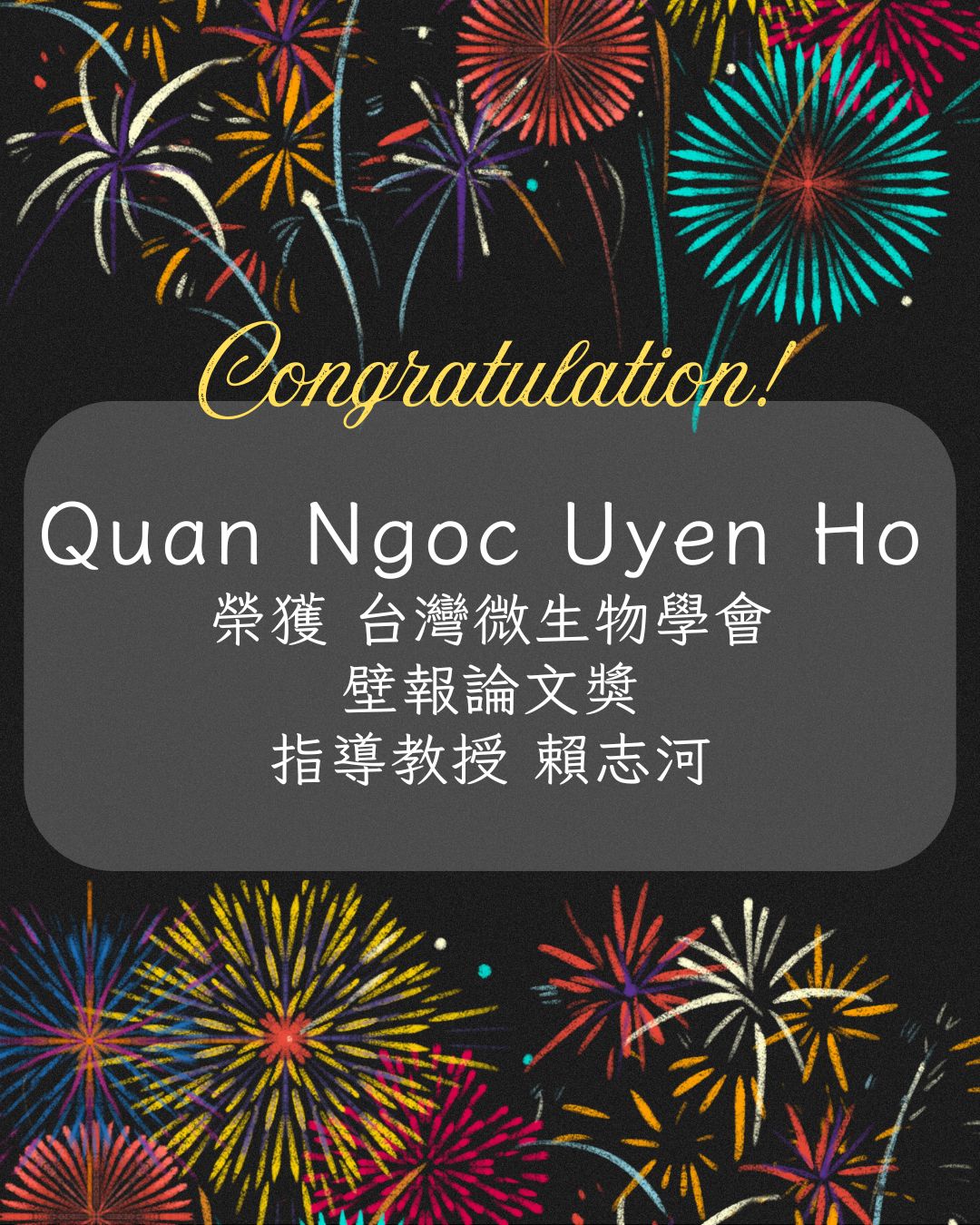 Quan Ngoc Uyen Ho 榮獲 台灣微生物學會壁報論文獎