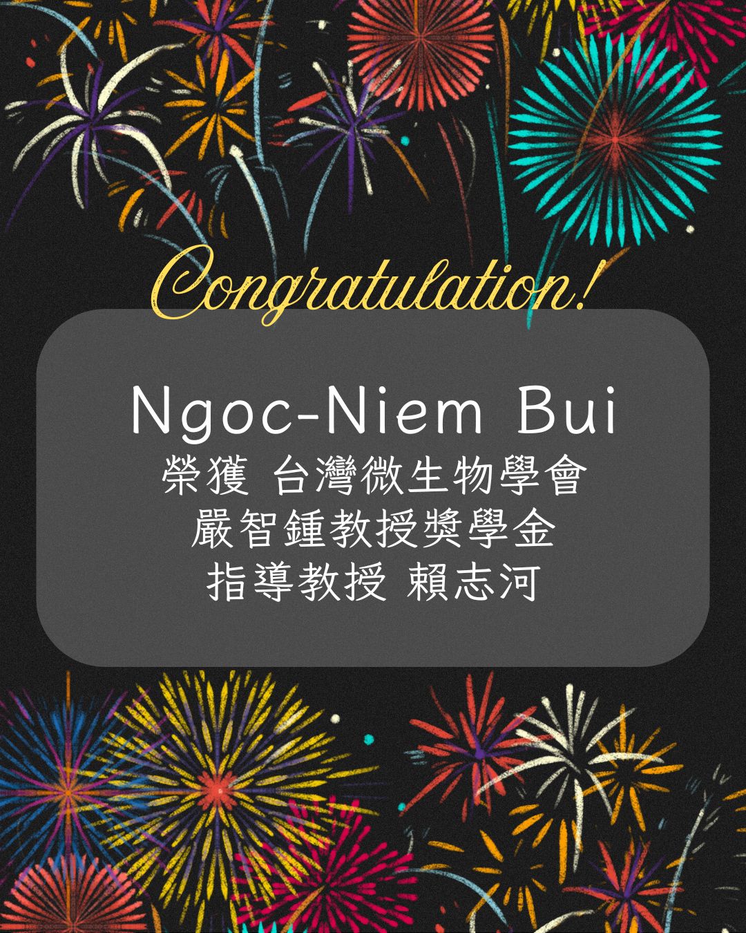 Ngoc-Niem Bui 榮獲 台灣微生物學會嚴智鍾教授獎學金