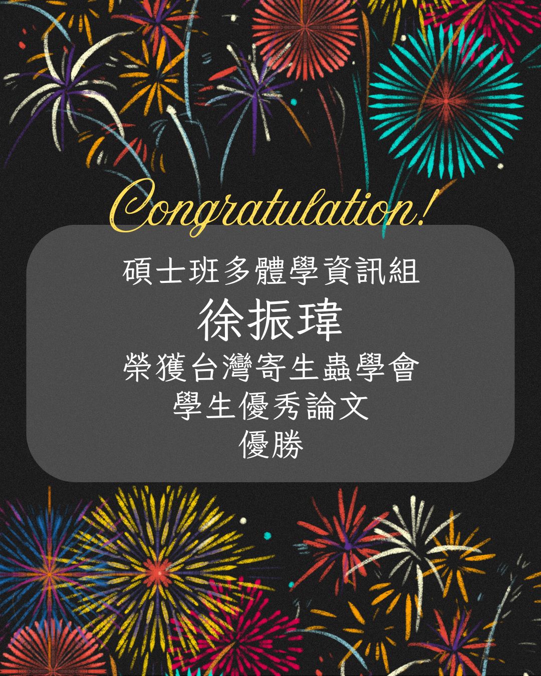 徐振瑋 榮獲 台灣寄生蟲學會學生優秀論文 優勝