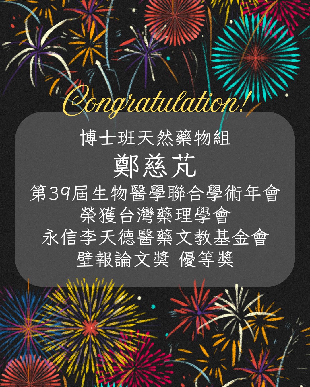 鄭慈芃 榮獲 39th JACBS 壁報論文獎 優等奬