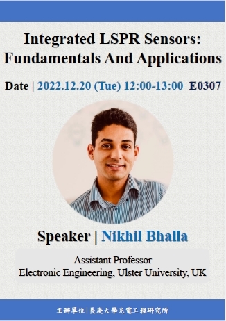 講題: Integrated LSPR Sensors:Fundamentals And Applications