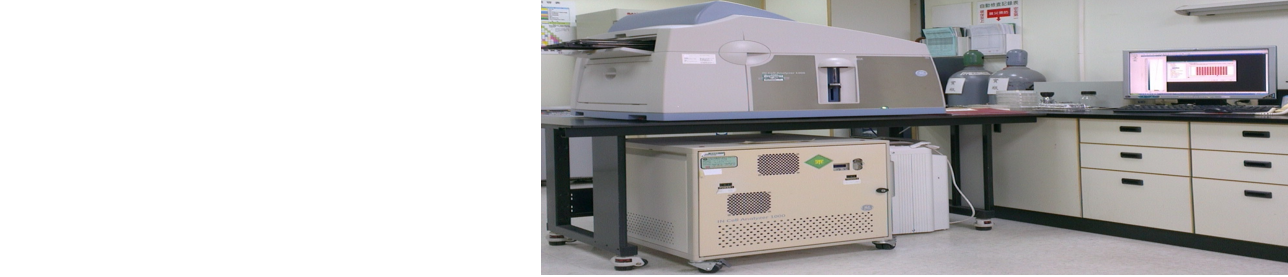 利用物鏡與自動平台拍照取得大量細胞圖像(IN Cell Analyzer 1000), 再針對圖像中螢光訊號的圈選,進而測定出數量、螢光強度、面積、長度等 的數值分析結果(IN Cell Investigator)。