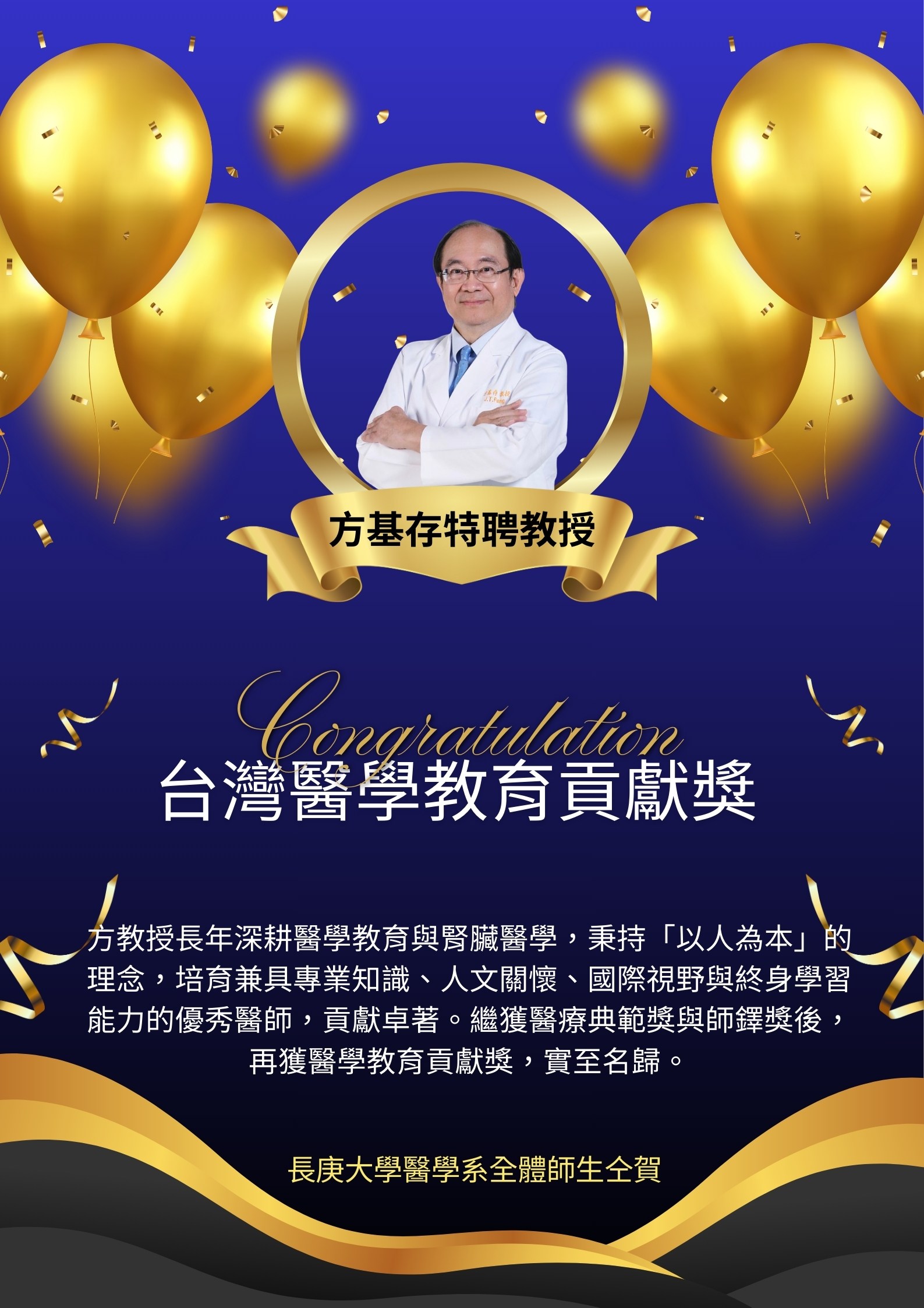 恭賀!本系方基存教授 榮獲「台灣醫學教育貢獻獎」