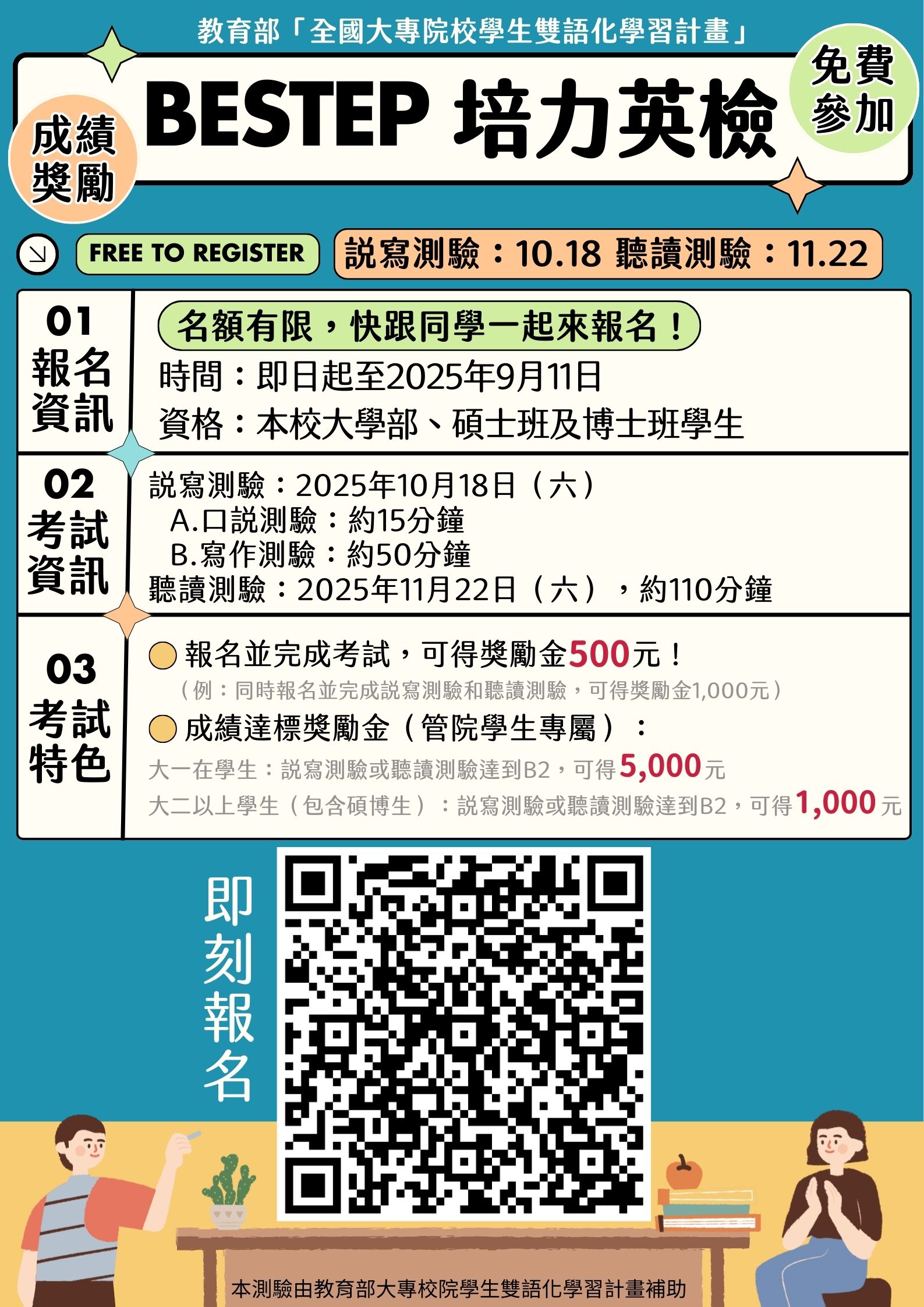 【考試資訊】114學年度培力英檢(BEST)免費報名中!