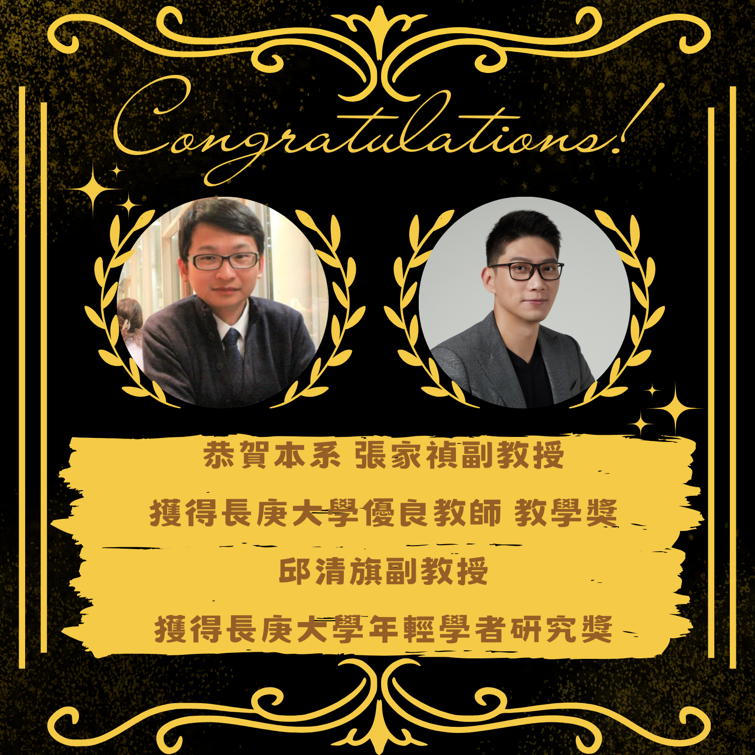 以及邱清旗副教授榮獲長庚大學年輕學者研究獎🥳