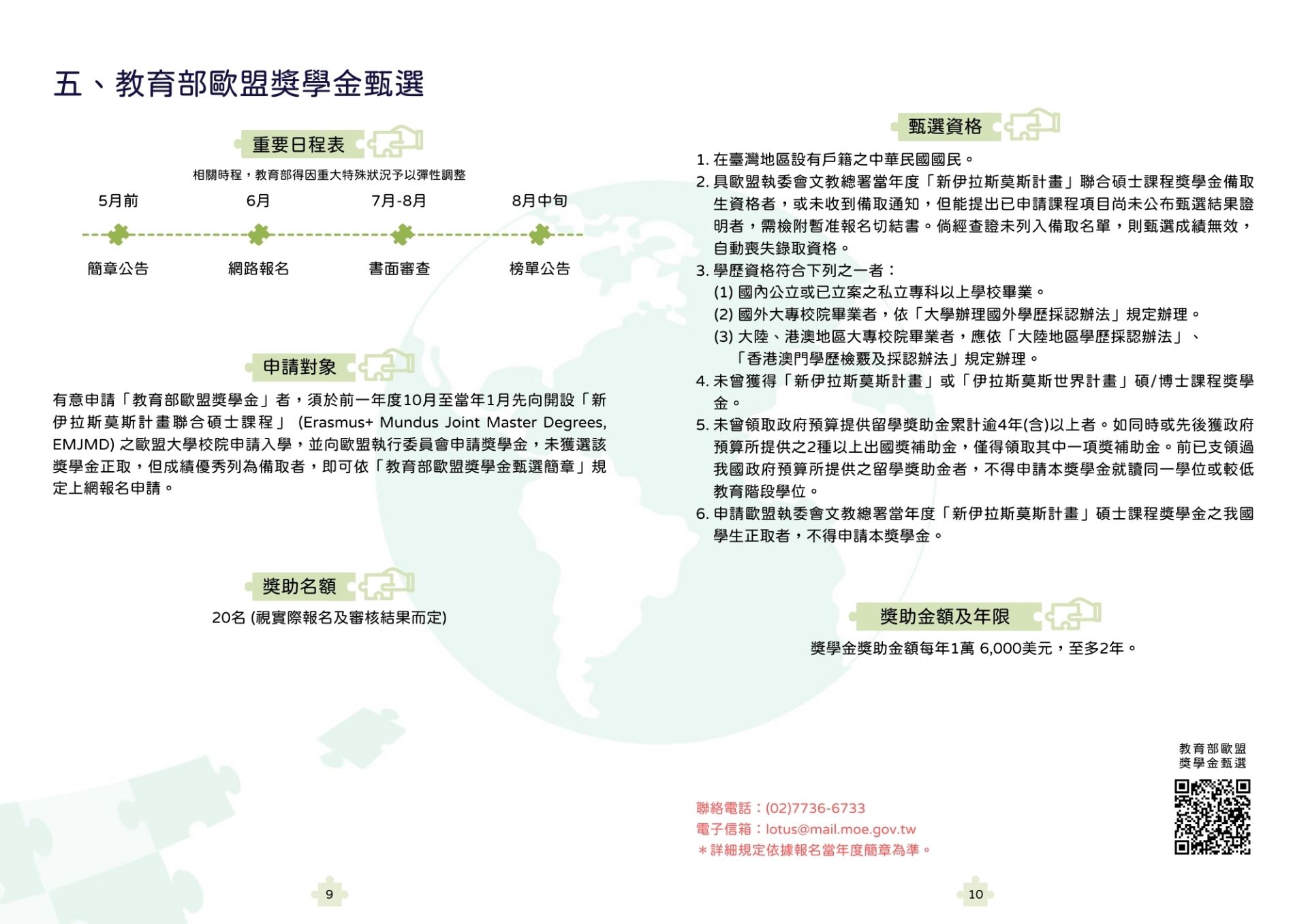 歐盟「新伊拉斯莫斯計畫」聯合碩士課程獎學金、教育部歐盟獎學金甄選
