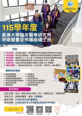 歡迎報考115學年度臨研所呼吸暨重症照護組碩士班~免筆試! 報名時間:115年1月7日~2月6日!!