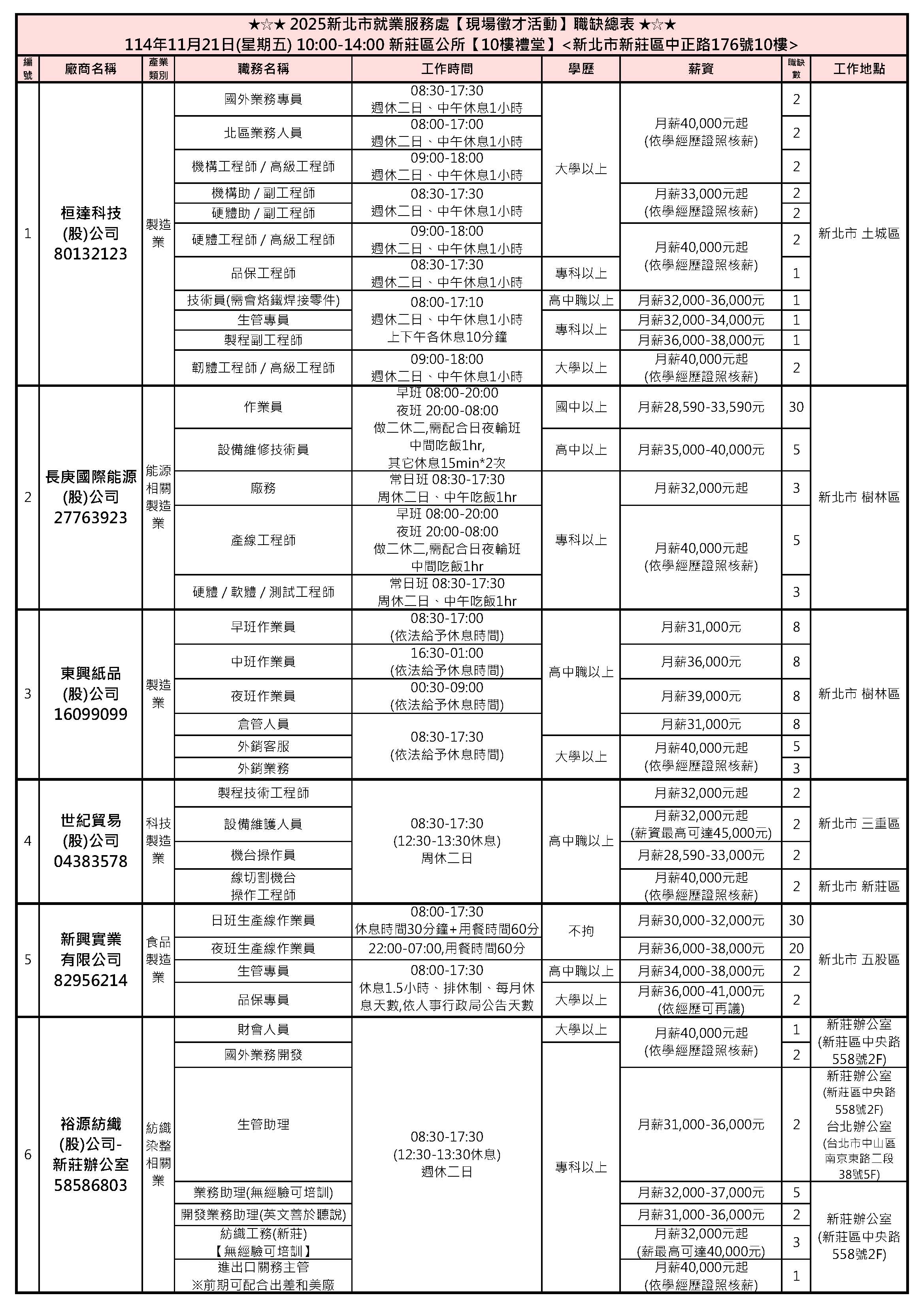 「2025新北市聯合徵才活動」,邀請31家廠商,提供超