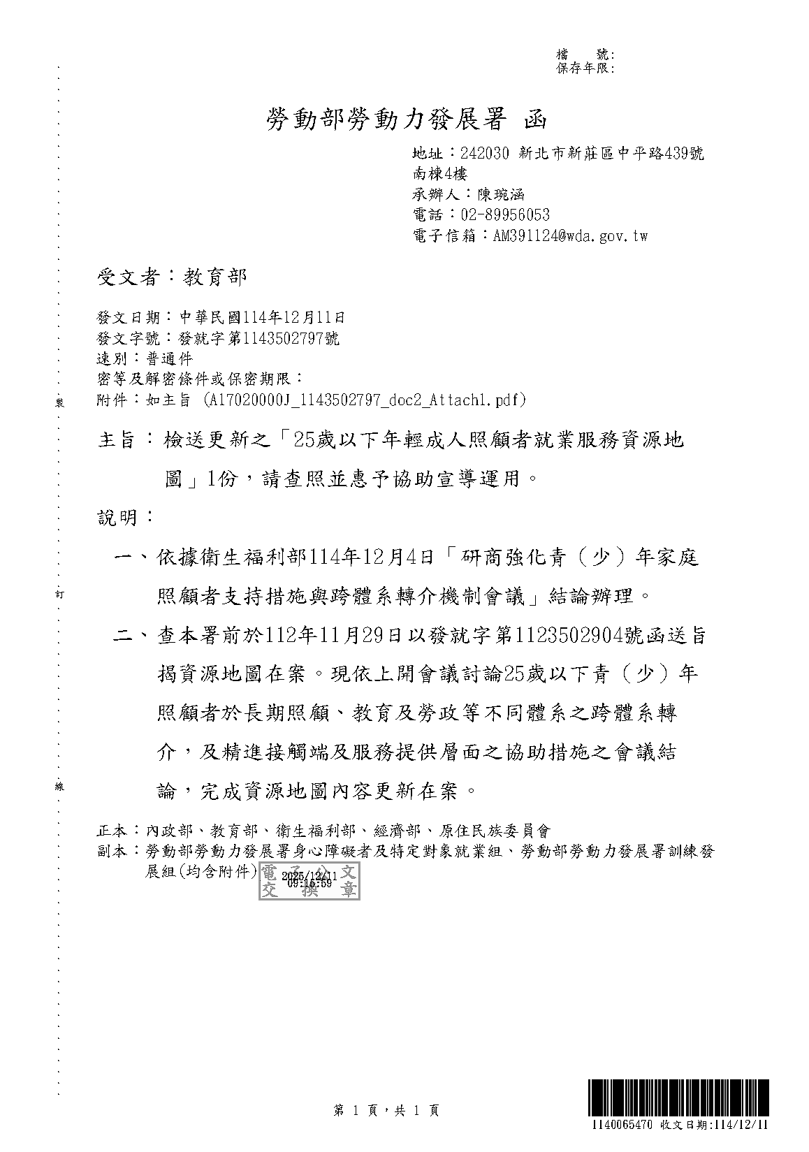 教育部 「25歲以下年輕成人照顧者就業服務資源地圖」