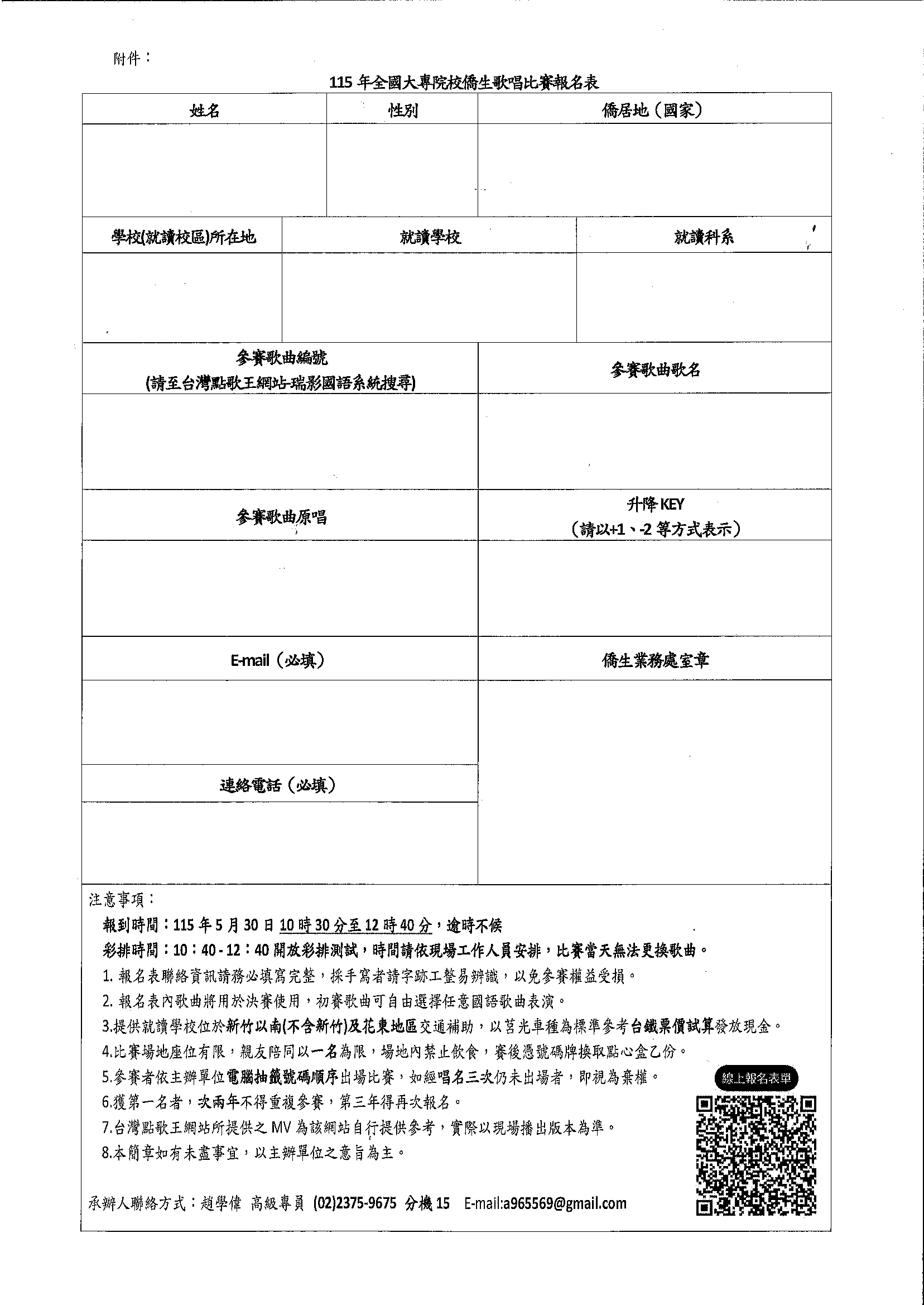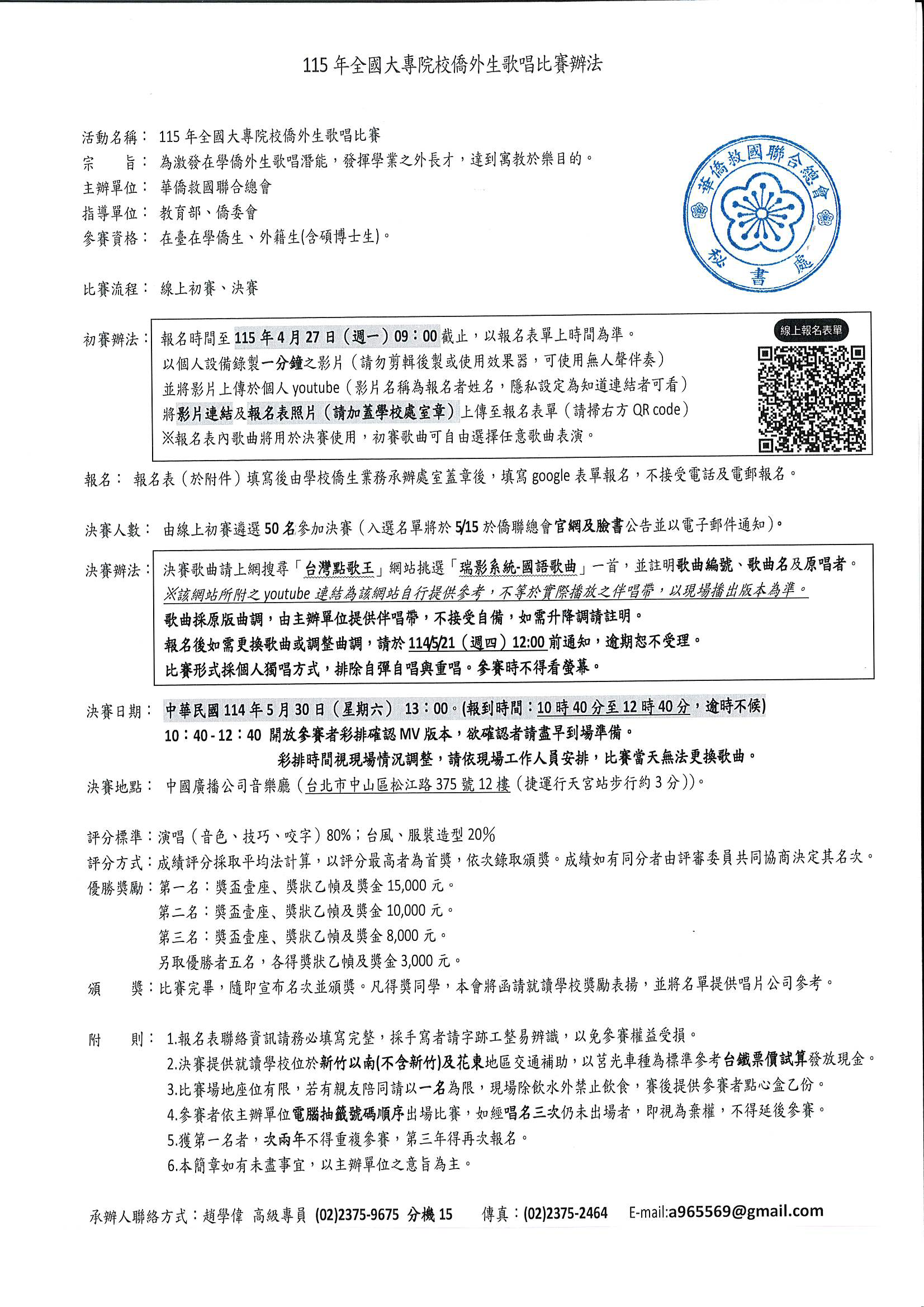 華僑救國聯合總會「115年全國大專院校僑生歌唱比賽」